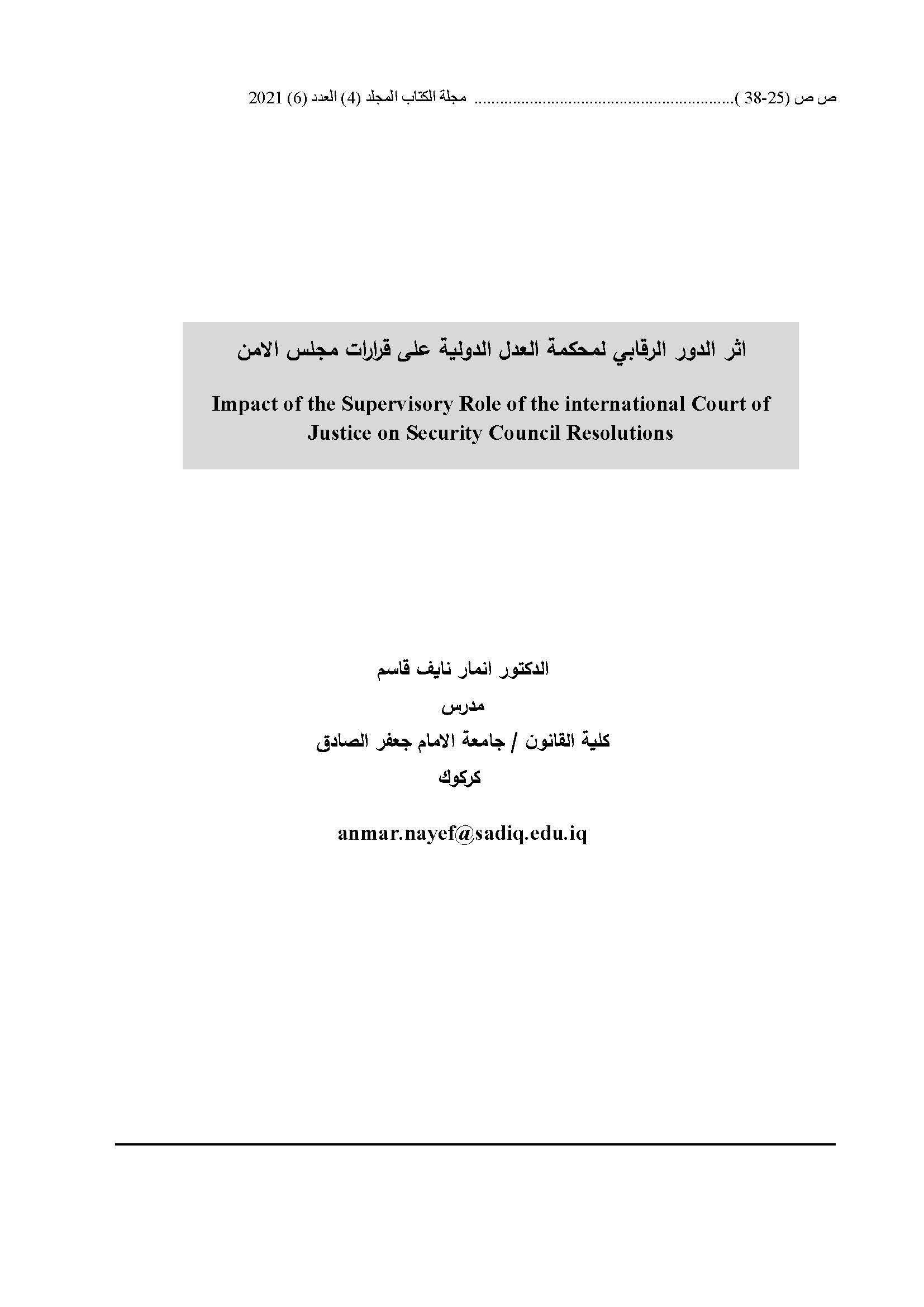 Impact of the Supervisory Role of the international Court of Justice on Security Council ResolutionsAbstract views : 73 | PDF downloads : 53Page No.: 25-38 |