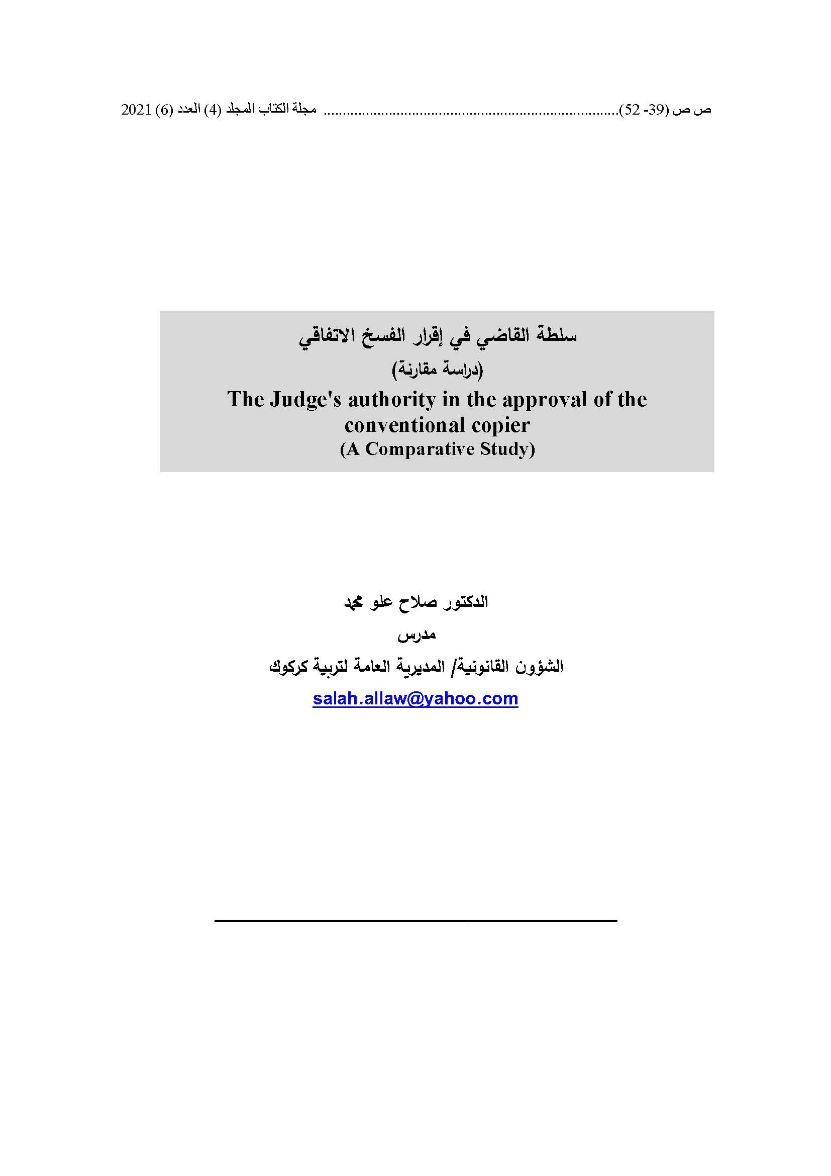 The Judge's authority in the approval of the conventional copier (A Comparative Study)Abstract views : 75 | PDF downloads : 151Page No.: 39-52 |