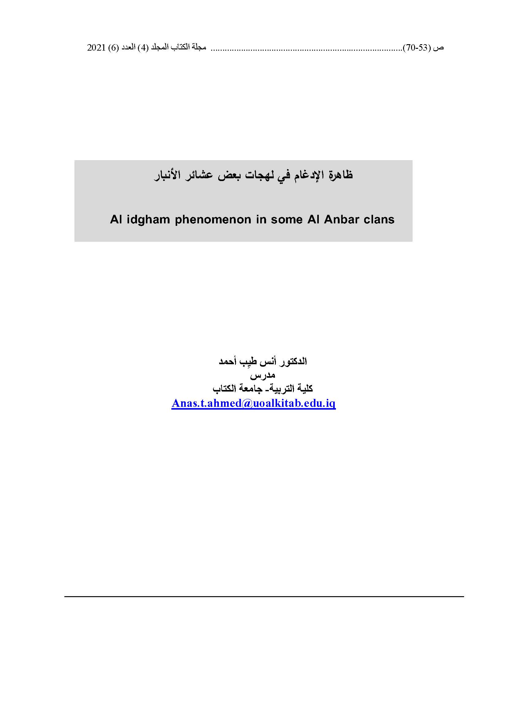 Al idgham phenomenon in some Al Anbar clansAbstract views : 66 | PDF downloads : 59Page No.: 53-70 |