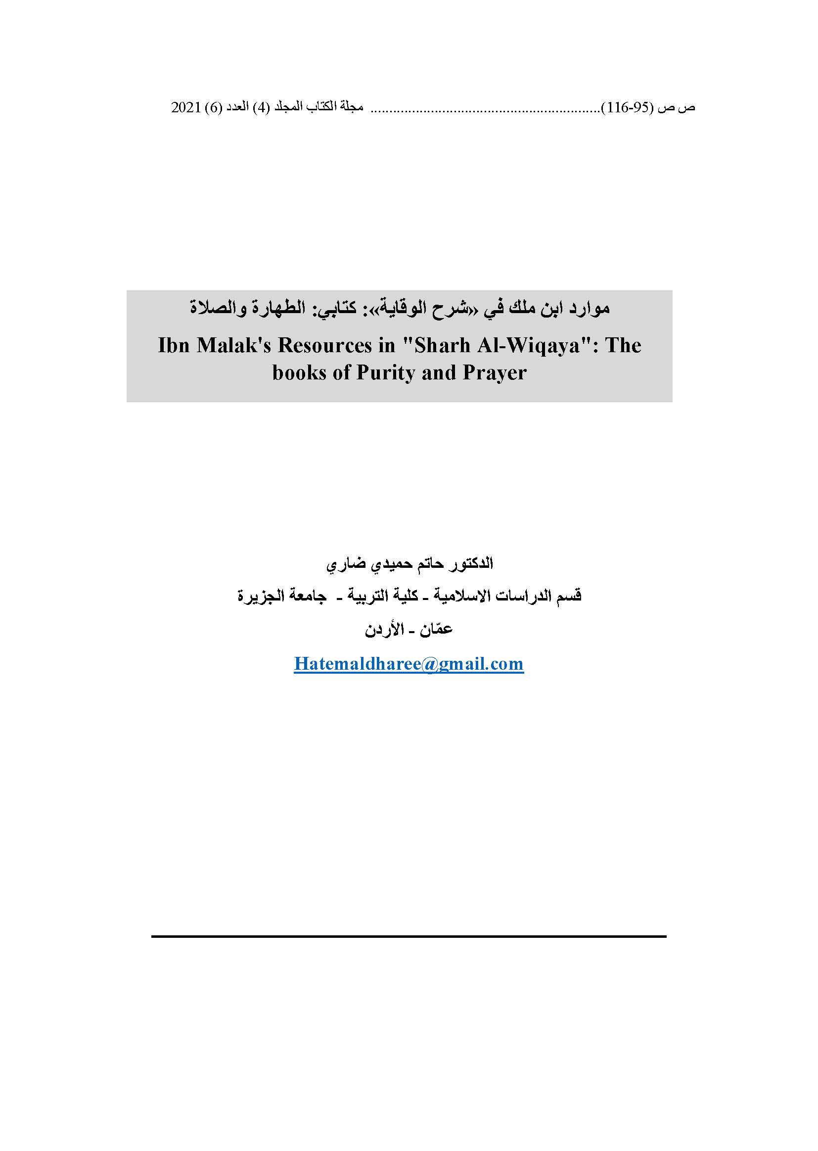 Ibn Malak's Resources in "Sharh Al-Wiqaya": The books of Purity and PrayerAbstract views : 247 | PDF downloads : 81Page No.: 94-116 |