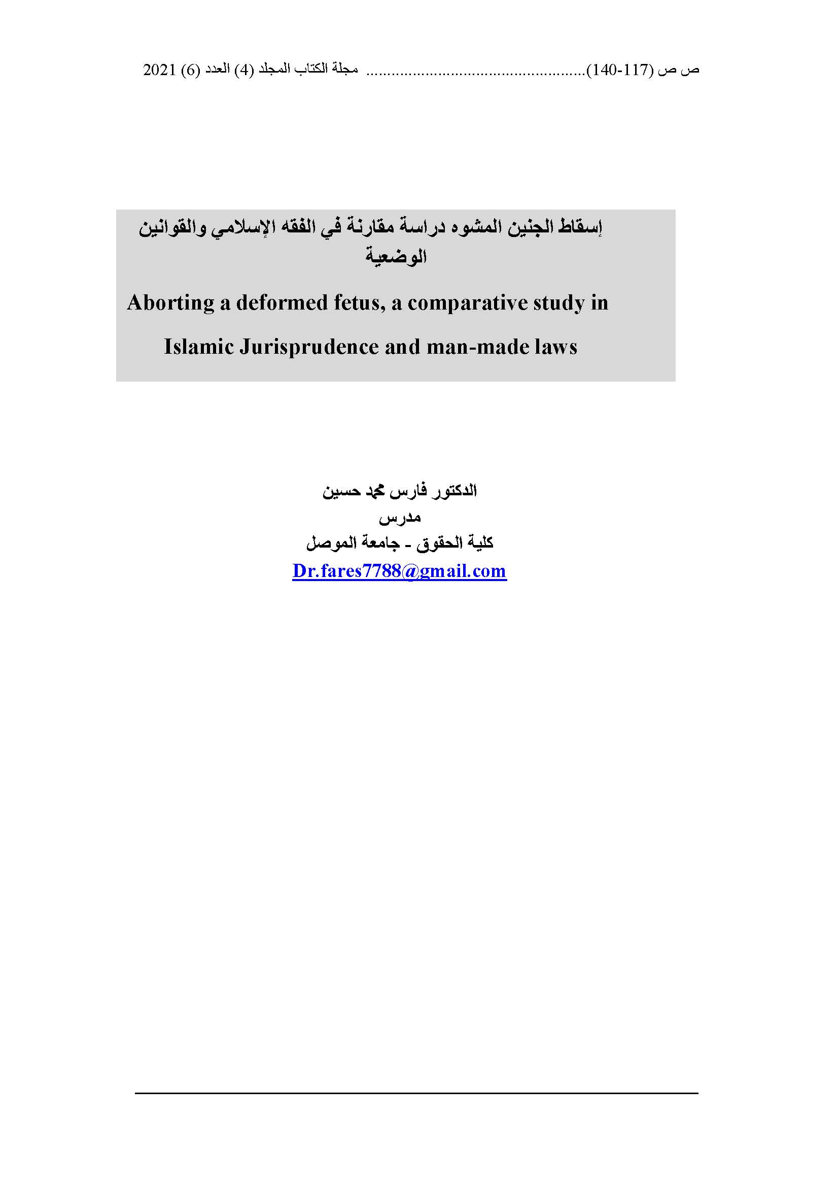 Aborting a deformed fetus, a comparative study in Islamic Jurisprudence and man-made lawsAbstract views : 73 | PDF downloads : 53Page No.: 117-140 |