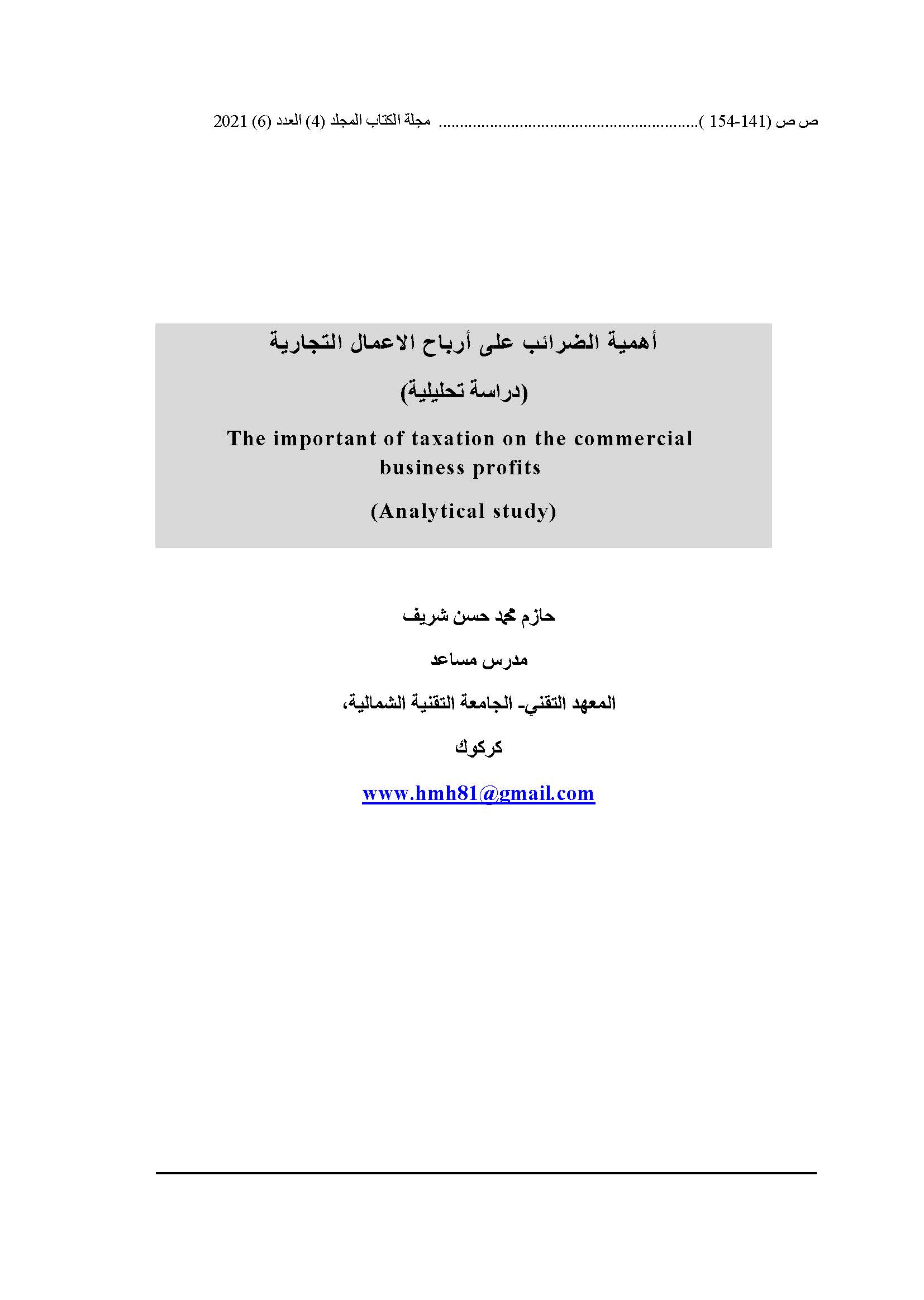 The important of taxation on the commercial business profits (Analytical study)Abstract views : 82 | PDF downloads : 75Page No.: 141-154 |
