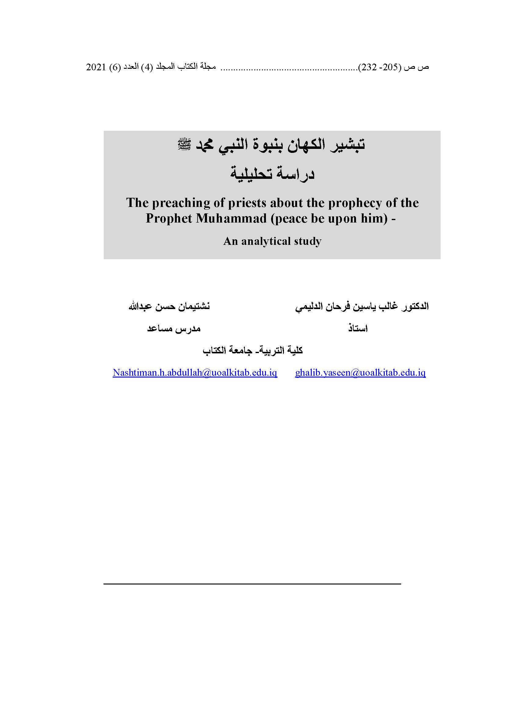 The preaching of priests about the prophecy of the Prophet Muhammad (peace be upon him) - An analytical studyAbstract views : 76 | PDF downloads : 61Page No.: 205-232 |