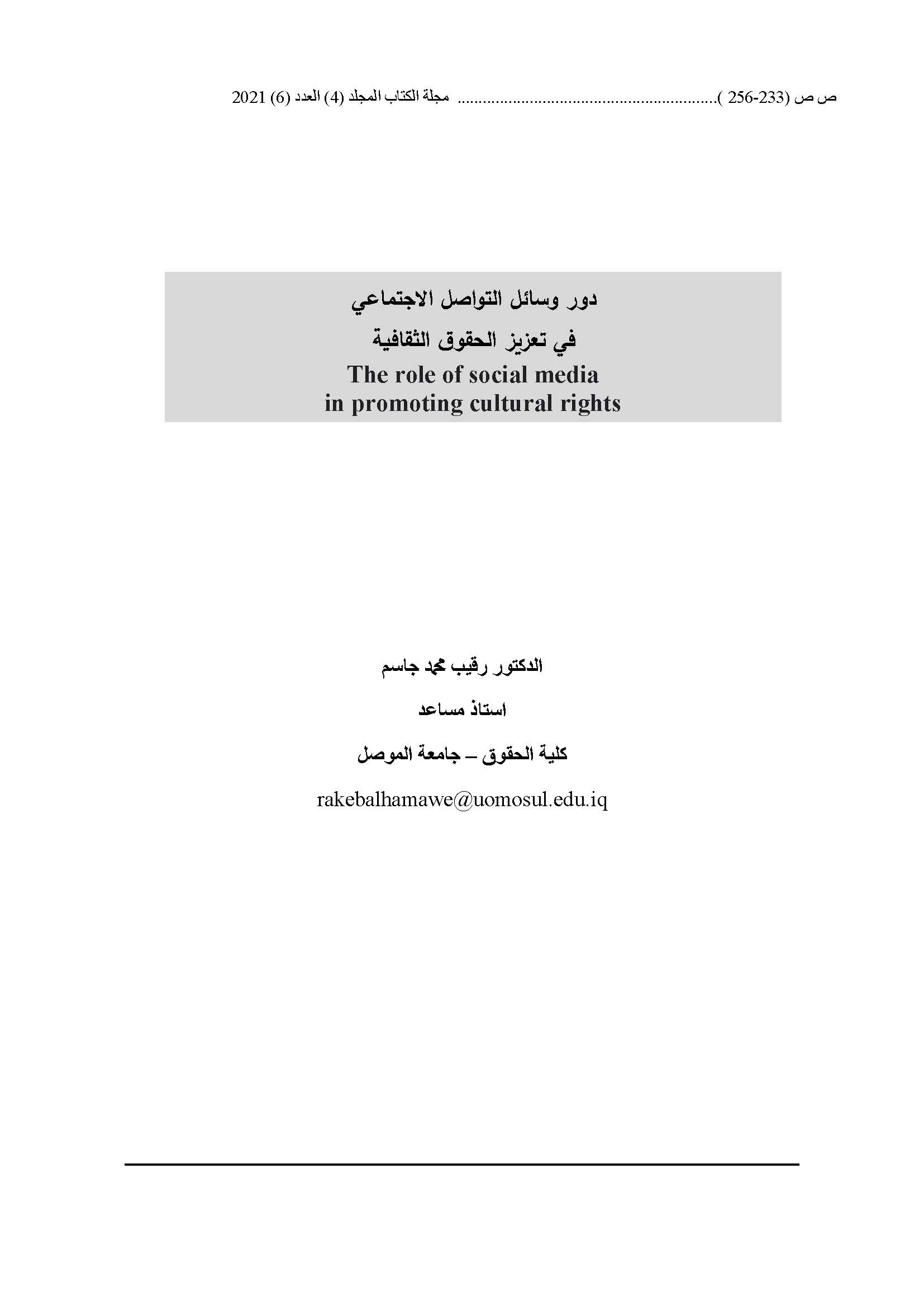 The role of social media in promoting cultural rightsAbstract views : 222 | PDF downloads : 119Page No.: 233-256 |