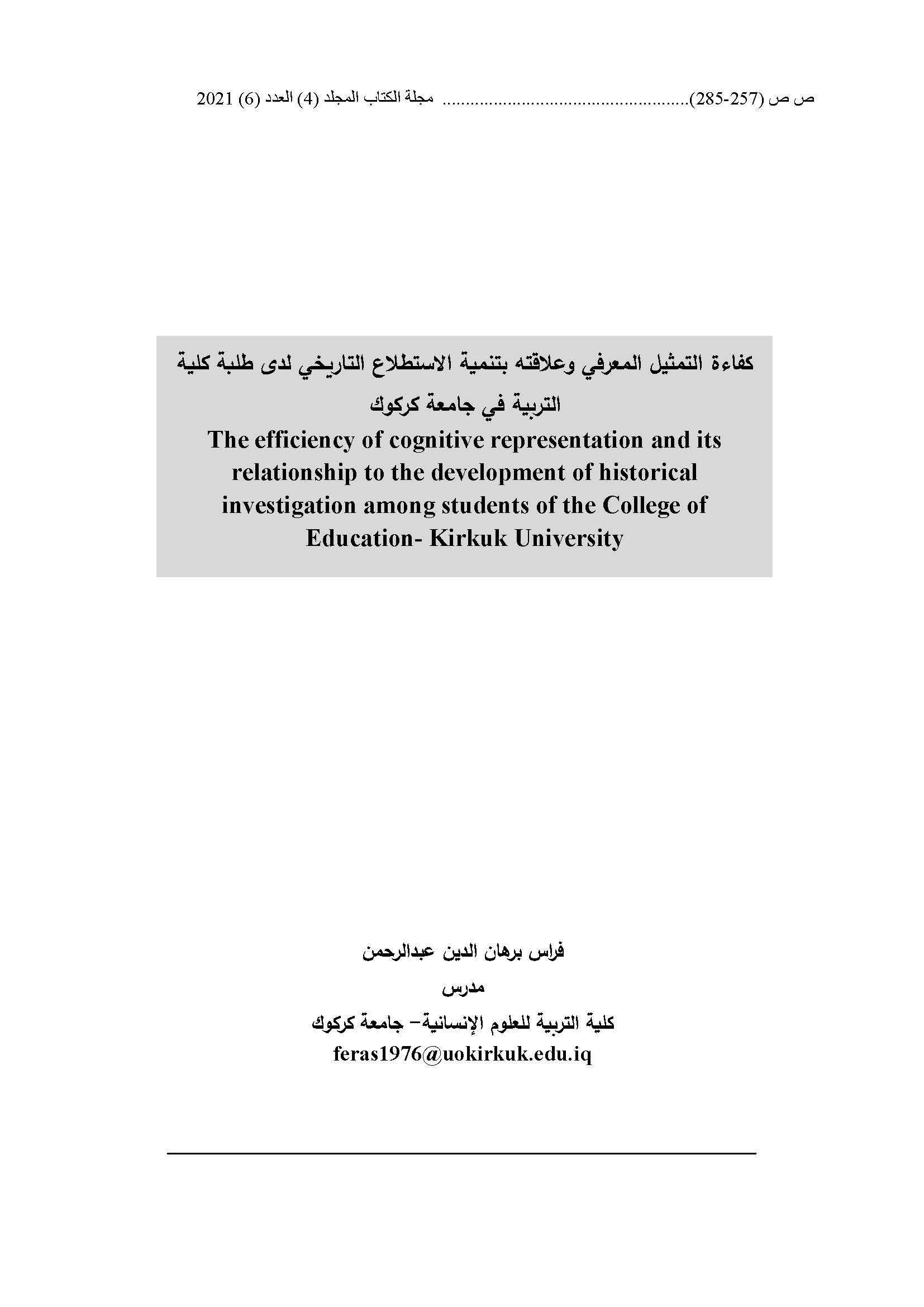 The efficiency of cognitive representation and its relationship to the development of historical investigation among students of the College of Education- Kirkuk UniversityAbstract views : 59 | PDF downloads : 50Page No.: 257-285 |