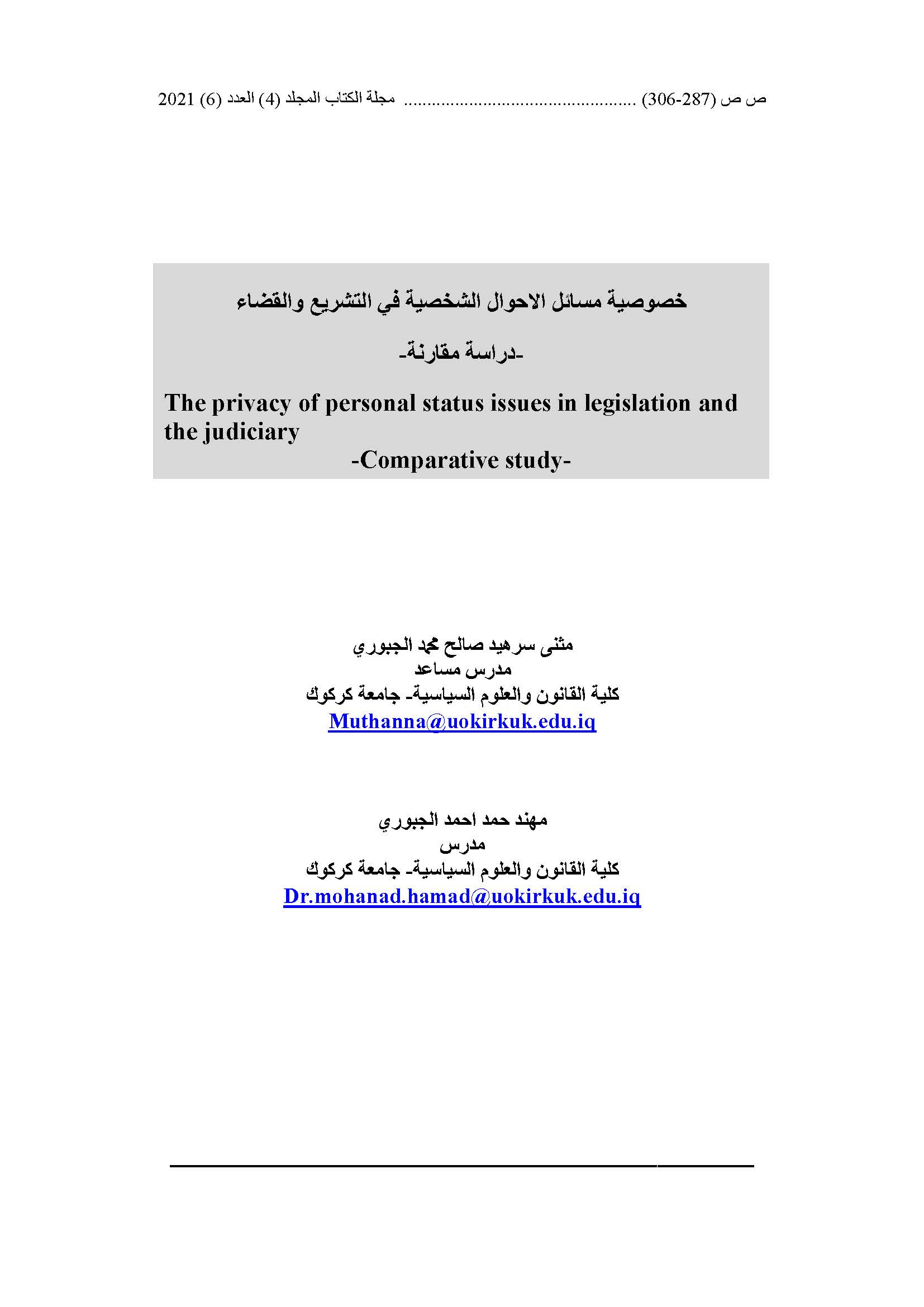 The privacy of personal status issues in legislation and the judiciary -Comparative studyAbstract views : 112 | PDF downloads : 37Page No.: 286-306 |