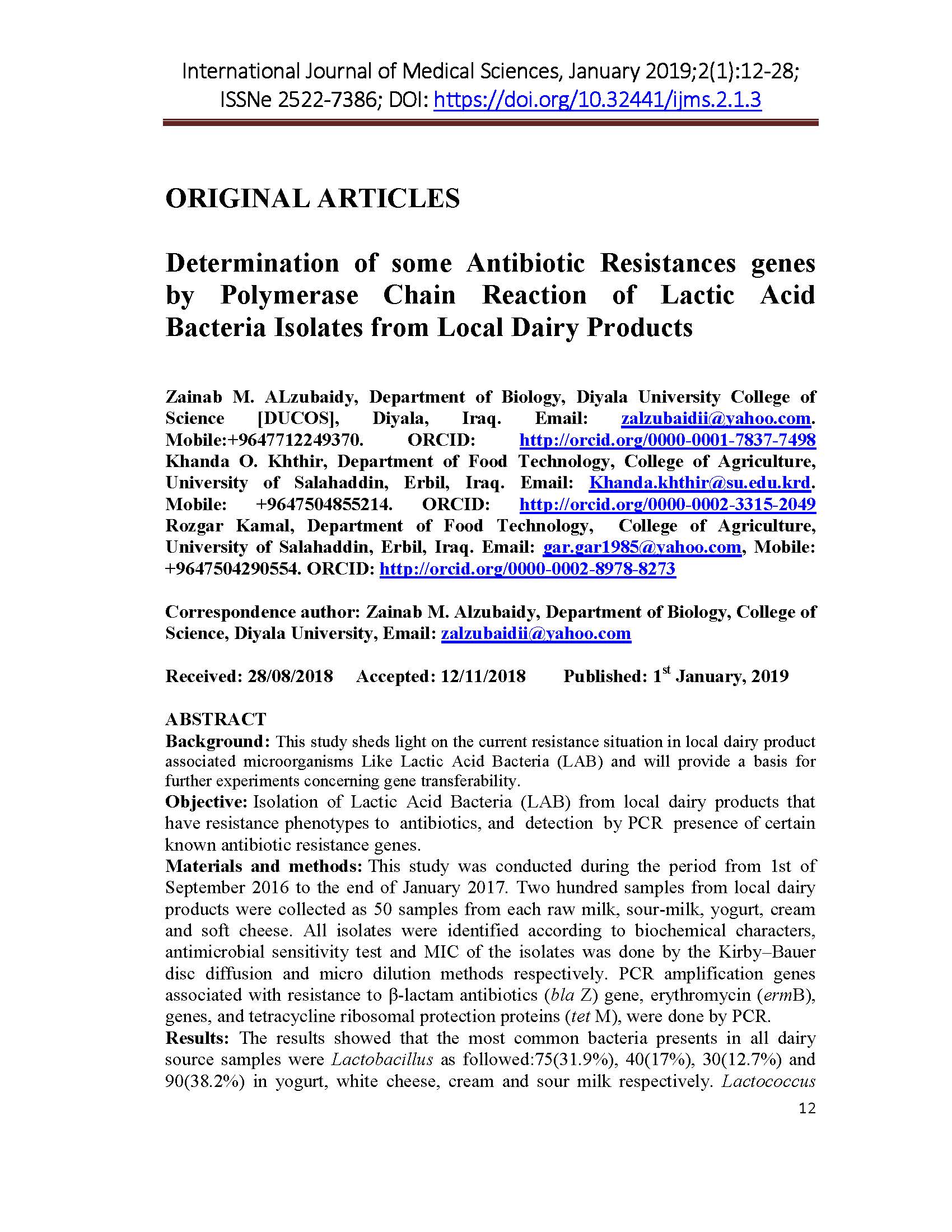 Determination of some Antibiotic Resistances genes by Polymerase Chain Reaction of Lactic Acid Bacteria Isolates from Local Dairy Products