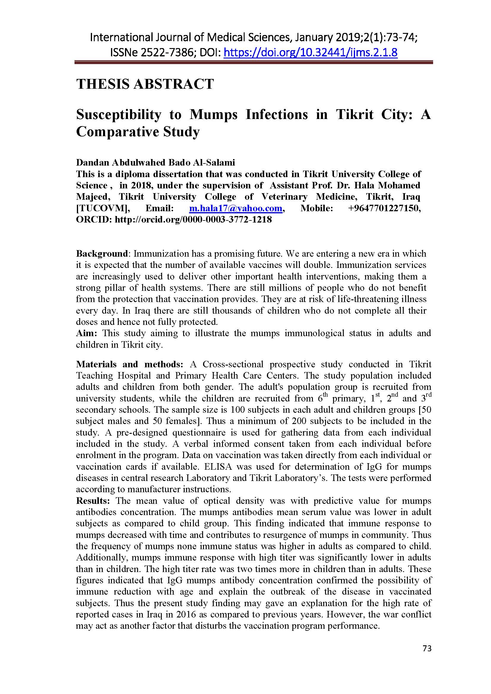 Susceptibility to Mumps Infections in Tikrit City: A Comparative Study