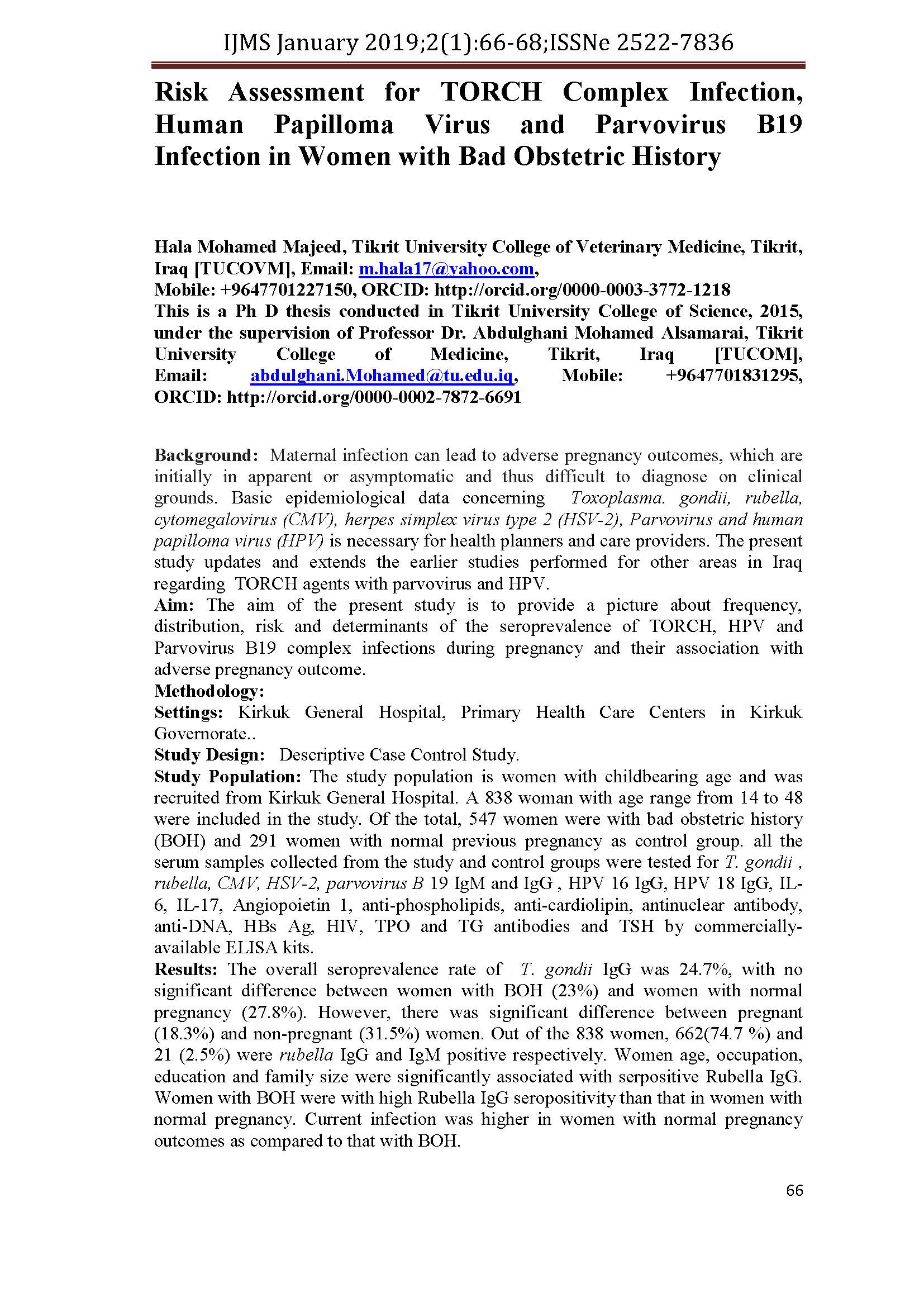 Risk Assessment for TORCH Complex Infection, Human Papilloma Virus and Parvovirus B19 Infection in Women with Bad Obstetric History